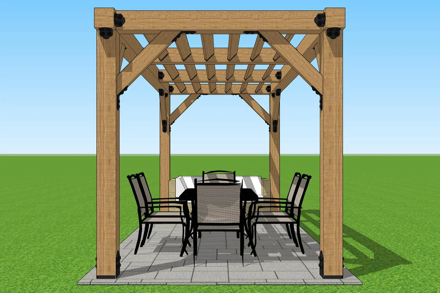 Elevation views from different angles so you can see how the pergola will look from each side, which means you won’t be surprised after building it.